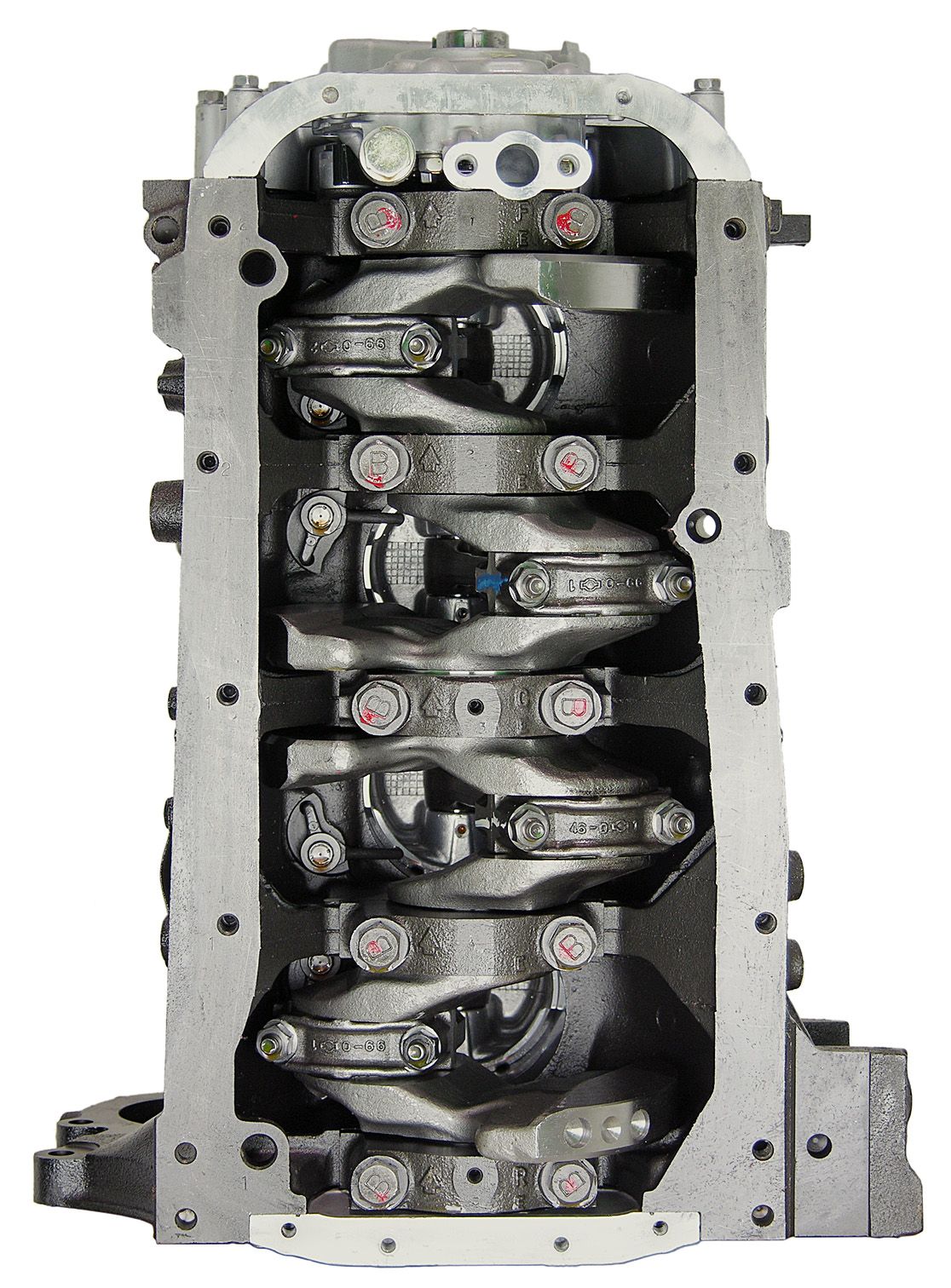 • Machining and New Parts – Deck surfaces are CNC machined and new parts are added. New parts inlcude bearings, pistons, rings, lifters, oil pump, gaskets, Viton™ valve seals, freeze plugs, galley plugs and either a new timing chain (with new tensioners) or a new timing belt (with new tensioner). If an engine has a timing-driven water pump, a new pump is installed.