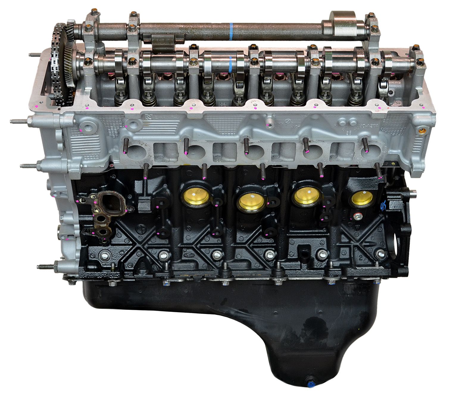 - Machining and New Parts – Deck surfaces are CNC machined and new parts are added. New parts inlcude bearings, pistons, rings, lifters, oil pump, gaskets, Viton™ valve seals, freeze plugs, galley plugs and either a new timing chain (with new tensioners) or a new timing belt (with new tensioner). If an engine has a timing-driven water pump, a new pump is installed.
