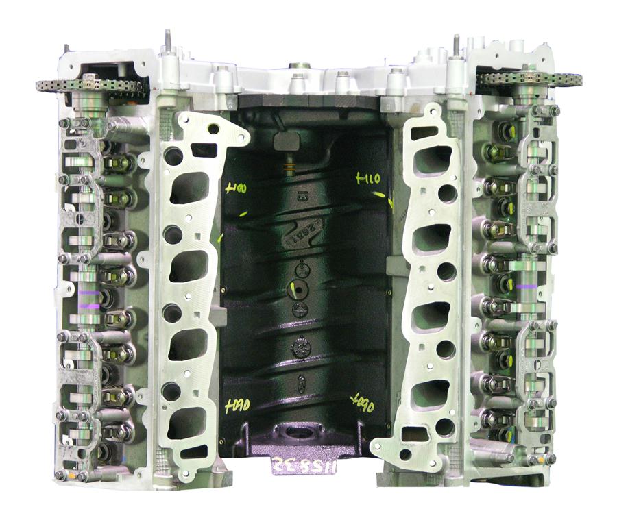 - Machining and New Parts – Deck surfaces are CNC machined and new parts are added. New parts include bearings, pistons, rings, lifters, oil pump, gaskets, Viton™ valve seals, freeze plugs, galley plugs and either a new timing chain (with new tensioners) or a new timing belt (with new tensioner). If an engine has a timing-driven water pump, a new pump is installed.