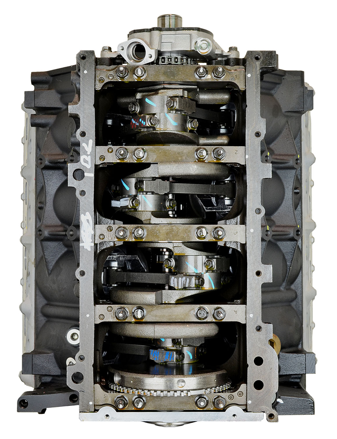 • Machining and New Parts – Deck surfaces are CNC machined and new parts are added. New parts inlcude bearings, pistons, rings, lifters, oil pump, gaskets, Viton™ valve seals, freeze plugs, galley plugs and either a new timing chain (with new tensioners) or a new timing belt (with new tensioner). If an engine has a timing-driven water pump, a new pump is installed.