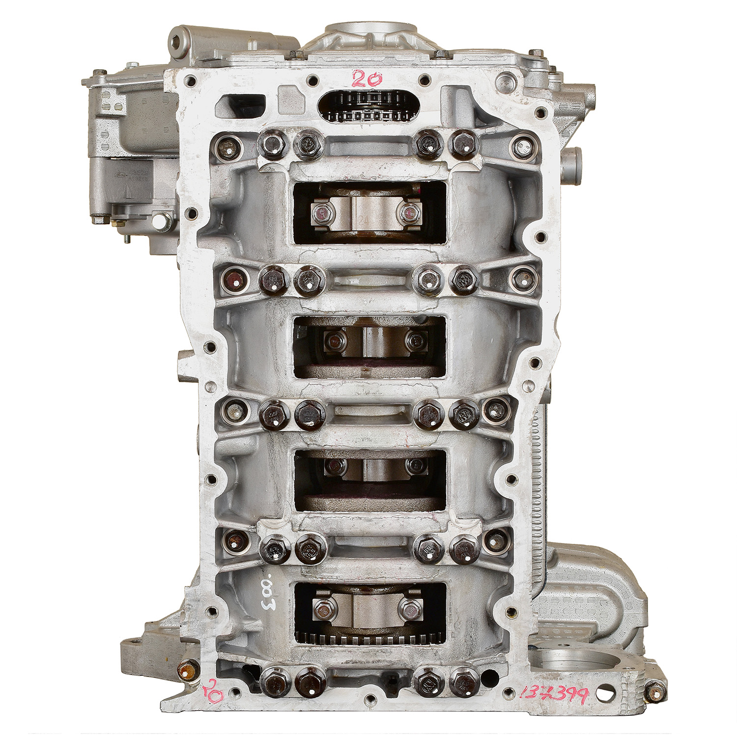 - Machining and New Parts – Deck surfaces are CNC machined and new parts are added. New parts inlcude bearings, pistons, rings, lifters, oil pump, gaskets, Viton™ valve seals, freeze plugs, galley plugs and either a new timing chain (with new tensioners) or a new timing belt (with new tensioner). If an engine has a timing-driven water pump, a new pump is installed.