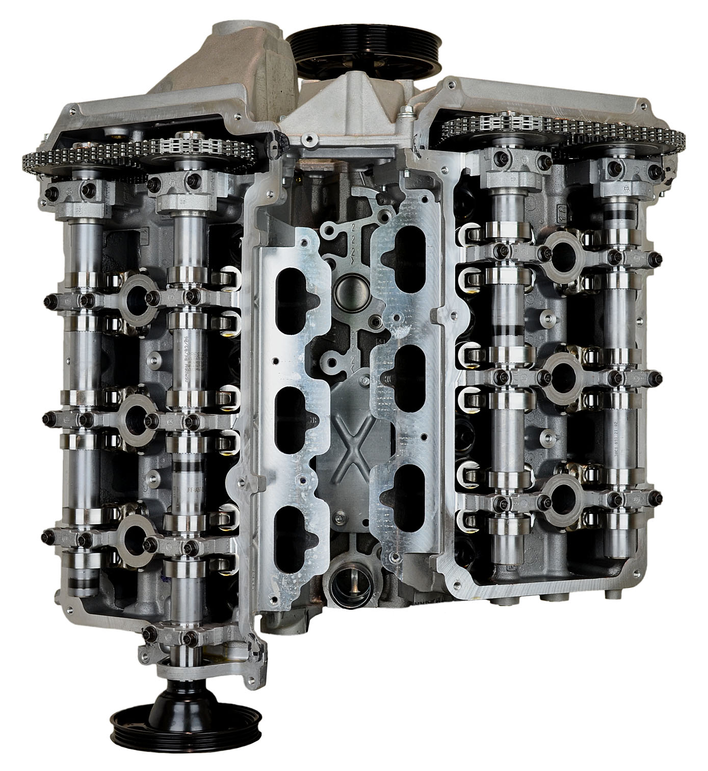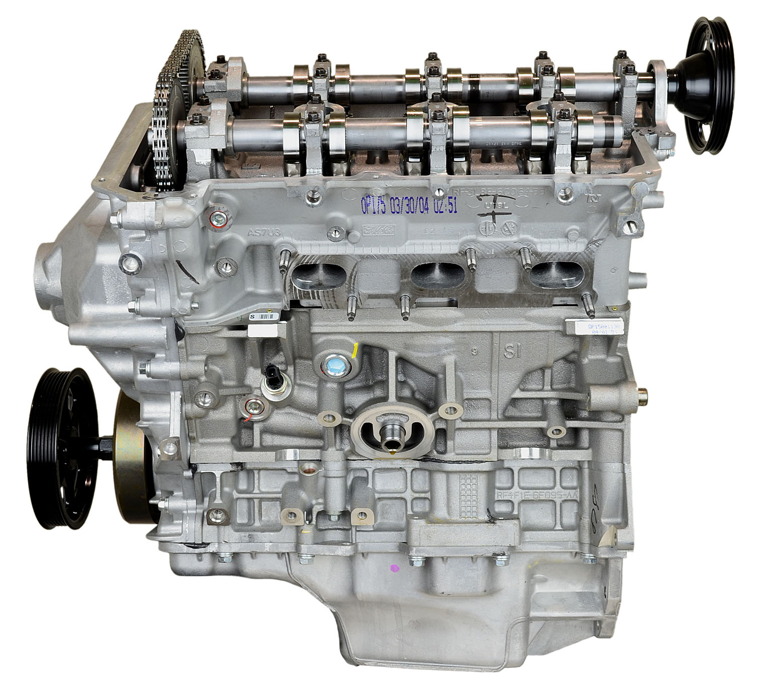 • Machining and New Parts – Deck surfaces are CNC machined and new parts are added. New parts inlcude bearings, pistons, rings, lifters, oil pump, gaskets, Viton™ valve seals, freeze plugs, galley plugs and either a new timing chain (with new tensioners) or a new timing belt (with new tensioner). If an engine has a timing-driven water pump, a new pump is installed.