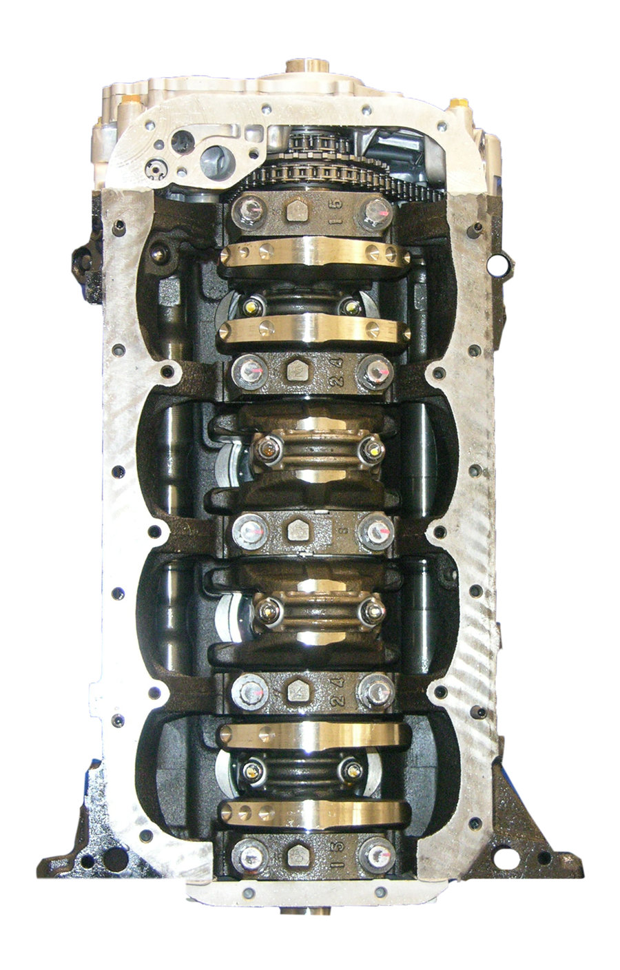 - Machining and New Parts – Deck surfaces are CNC machined and new parts are added. New parts inlcude bearings, pistons, rings, lifters, oil pump, gaskets, Viton™ valve seals, freeze plugs, galley plugs and either a new timing chain (with new tensioners) or a new timing belt (with new tensioner). If an engine has a timing-driven water pump, a new pump is installed.